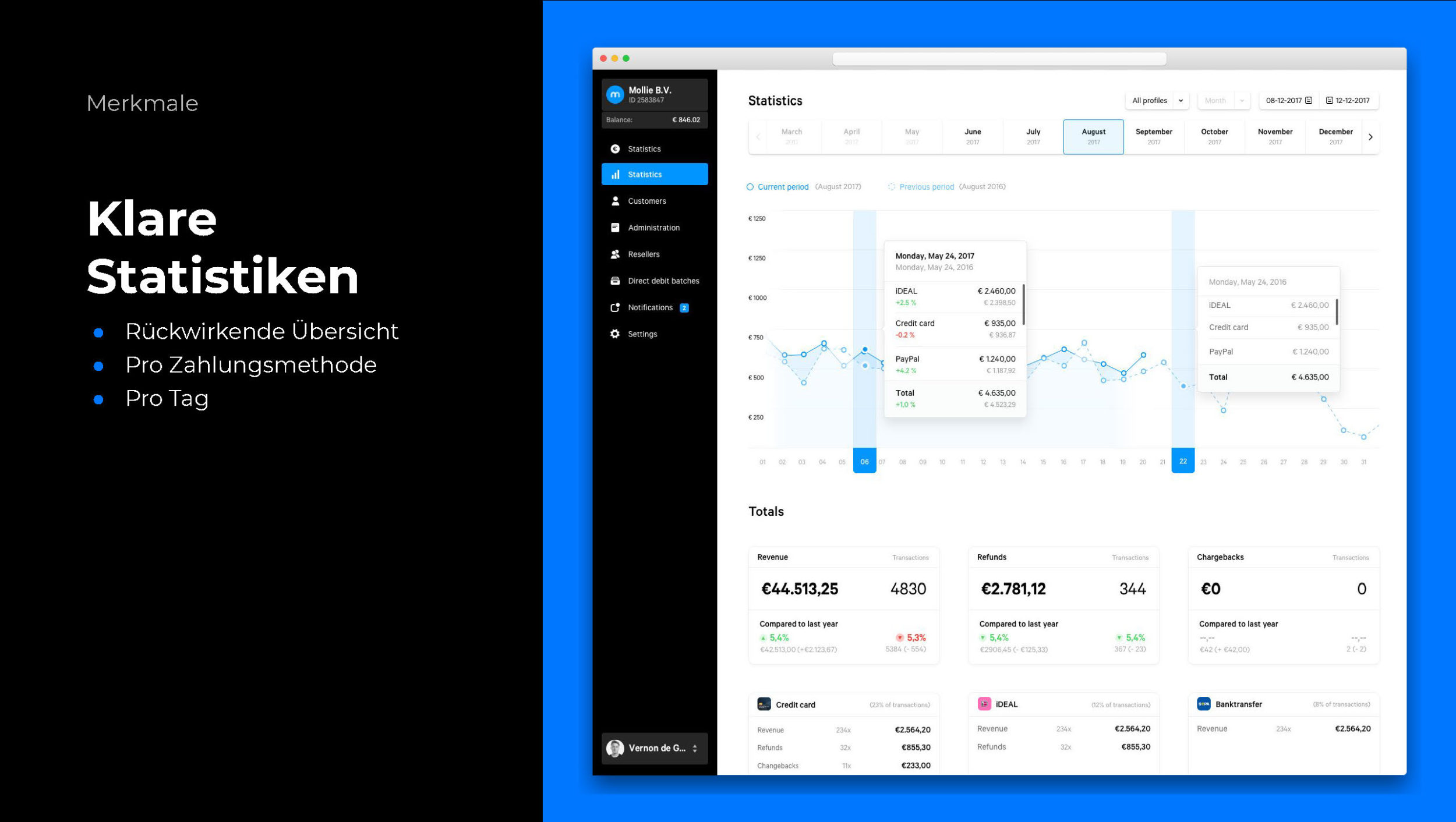 - Verwalten Sie Ihre Rückerstattungen schnell und einfach im Dashboard