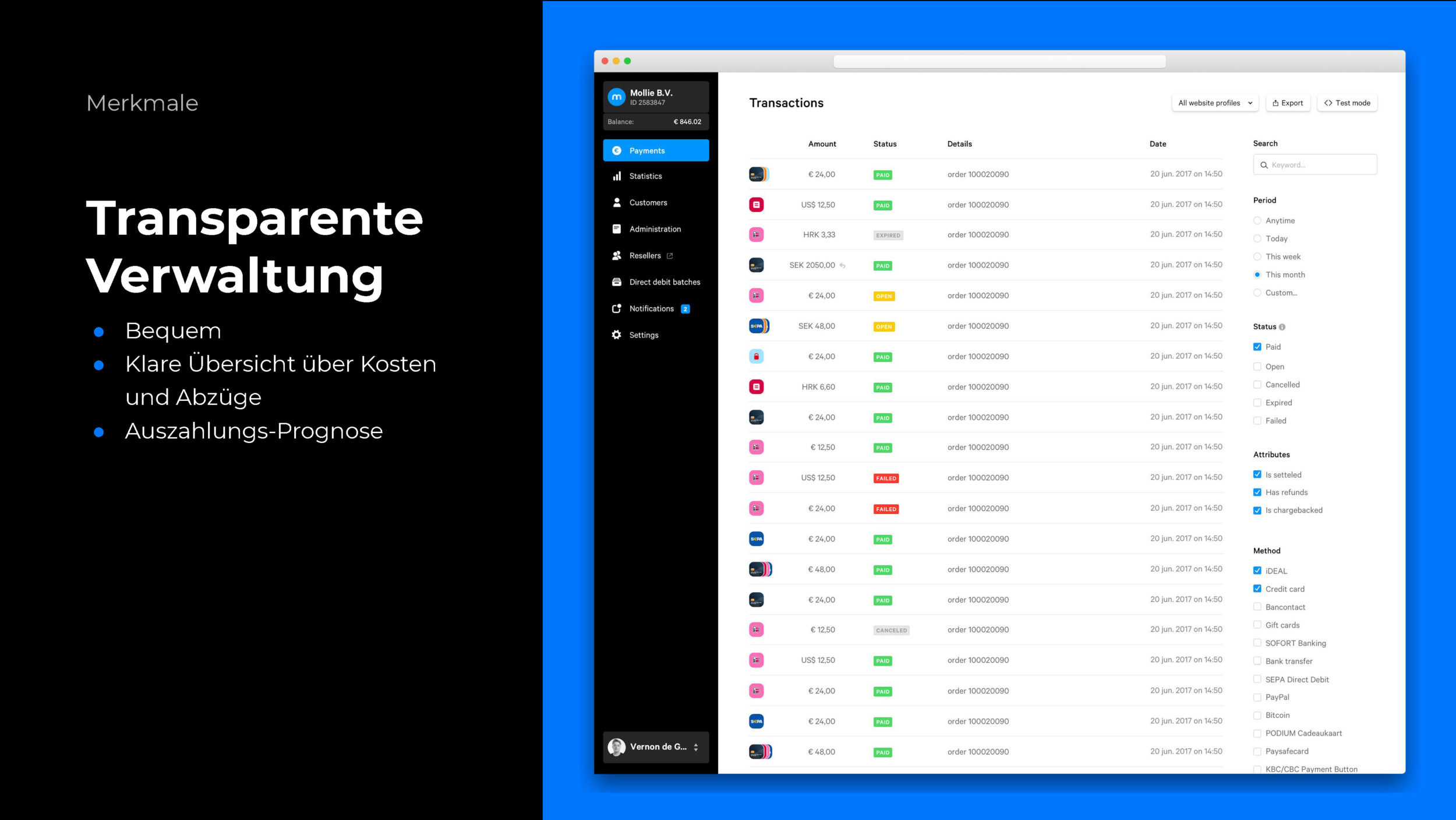 - Faire Gebühren für Zahlungsabwicklungen + Volumenmodell (siehe unten im Artikel)