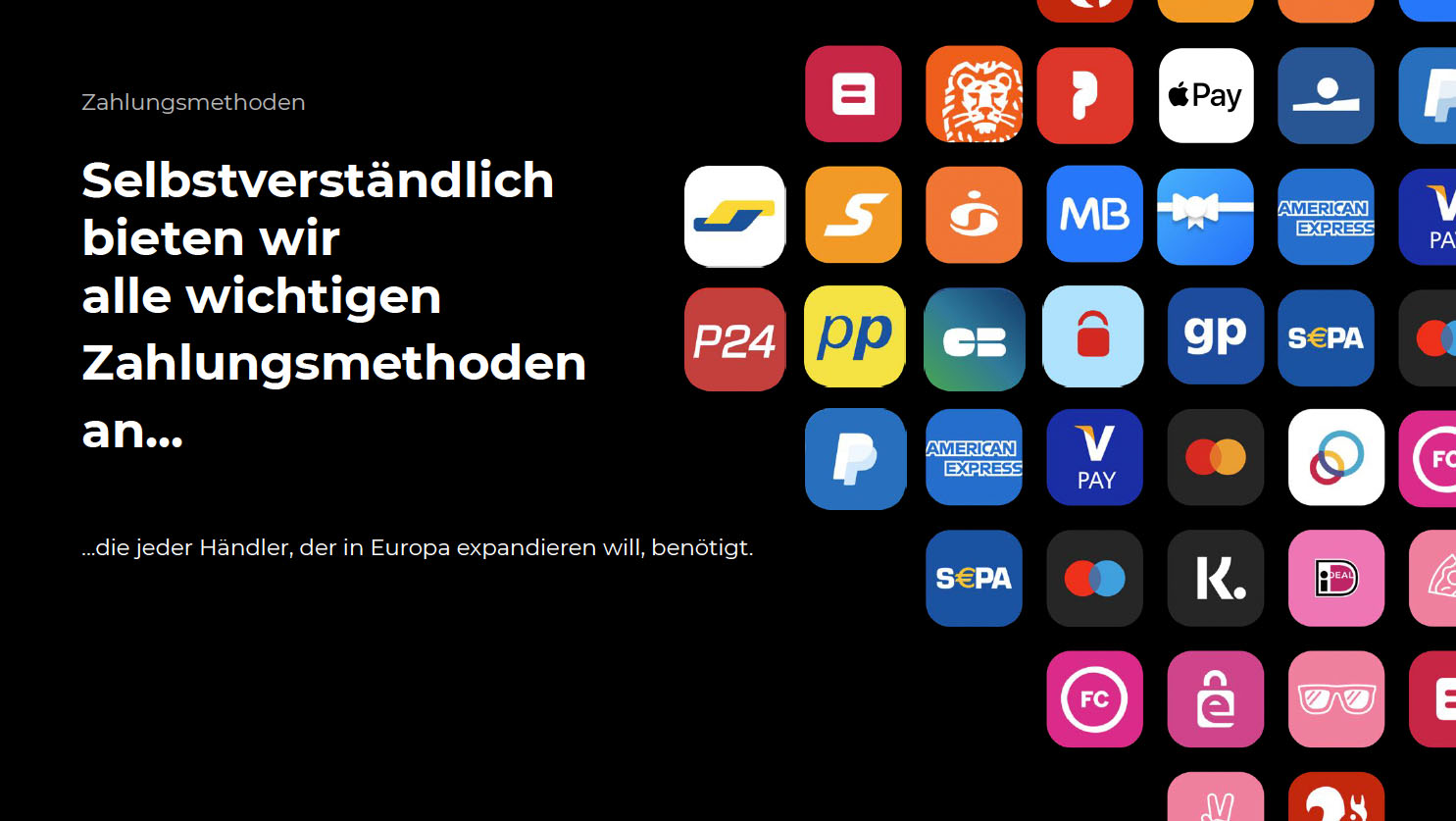 Die aktuellen Zahlungsanbieter / Zahlungsmethoden: