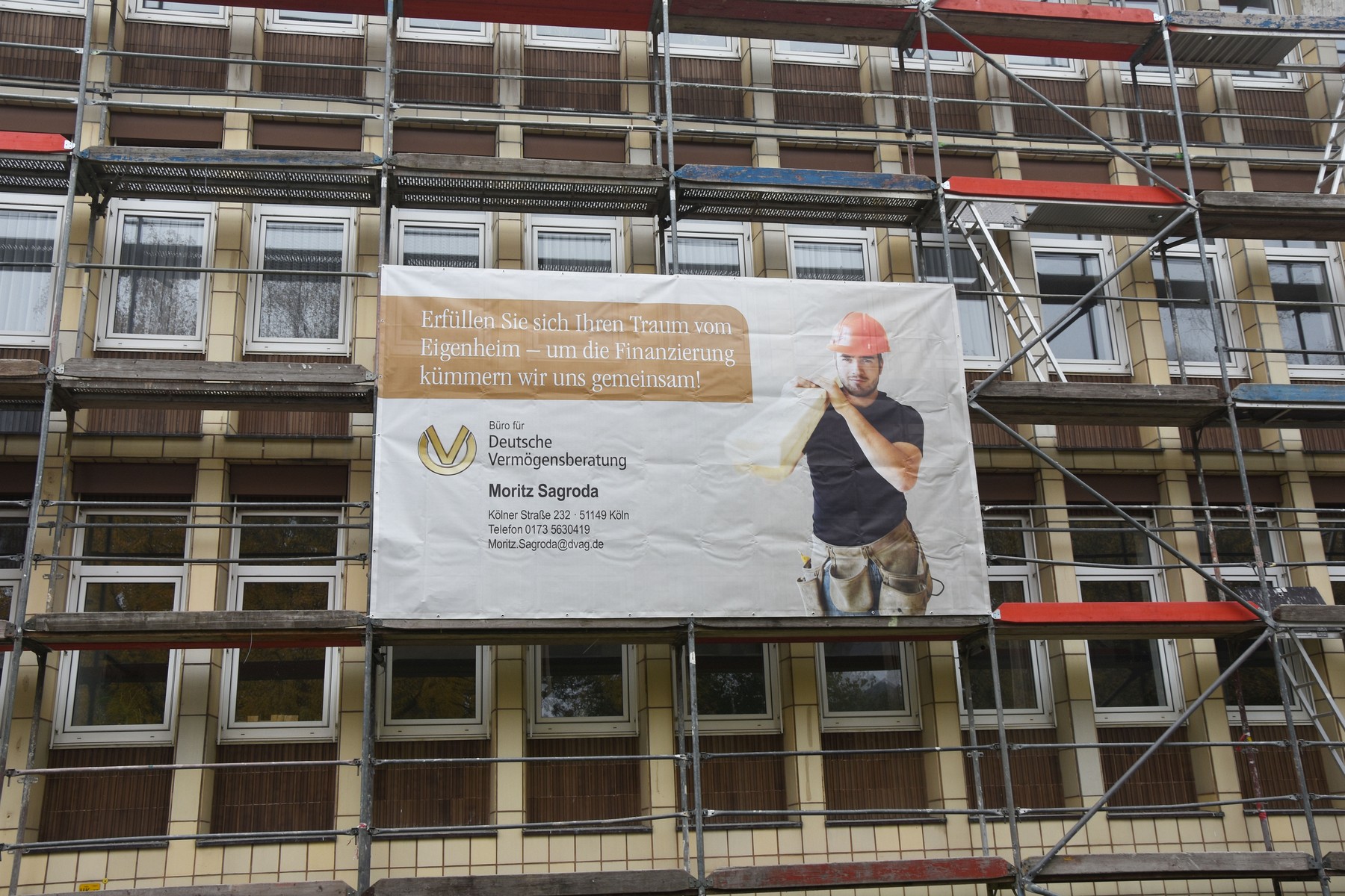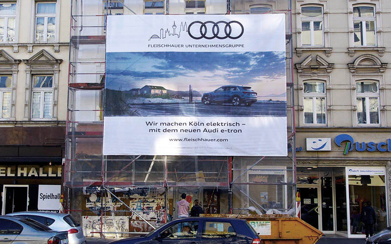 - Preis-/Leistungsverhältnis: Zu preiswerten Konditionen bietet Gerüstwerbung attraktive Werbemöglichkeiten.