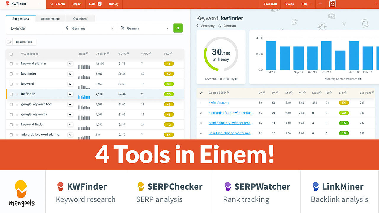 KWFinder – Keywordrecherche Keyword Tool mit Mehrwert + Tipps Noch nie war die Keyword-Recherche so einfach! Mit dem Keyword Finder, kurz kwfinder, macht SEO nun noch […]