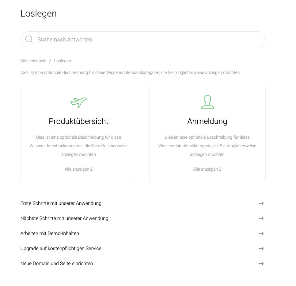 - Link Alle anzeigen Zeigen Sie den Link “ Alle anzeigen“ für jede Wissensdatenbankkategorie an.