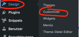 - Customizer: Gehe im Dashboard zu Design und klicke auf Customizer (Anpassen). Dies öffnet den WordPress Customizer.