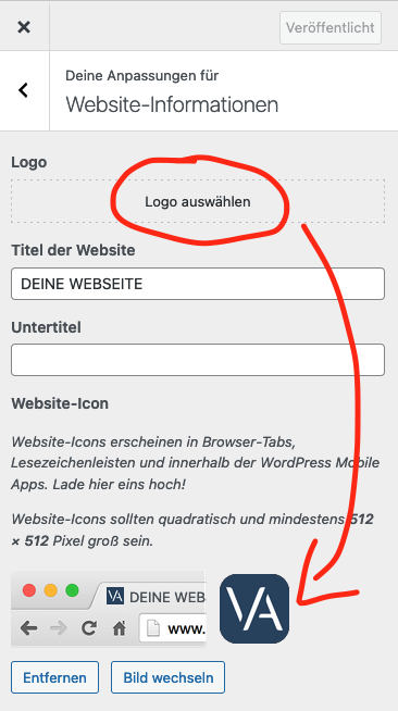 WordPress favicon ändern & einfügen + apple-touch-icon (Logo / Icon / Grafik / Symbol Adresszeile Browser Tab anpassen)