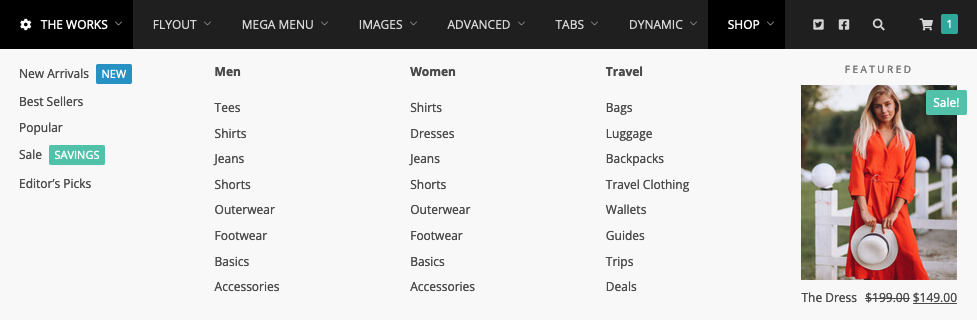 Beispiele von Mega Menüs in WordPress: